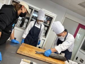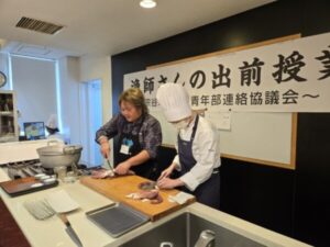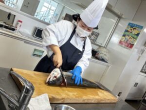 2年生は漁連さんから提供していただいた海産物を使って料理を作り、