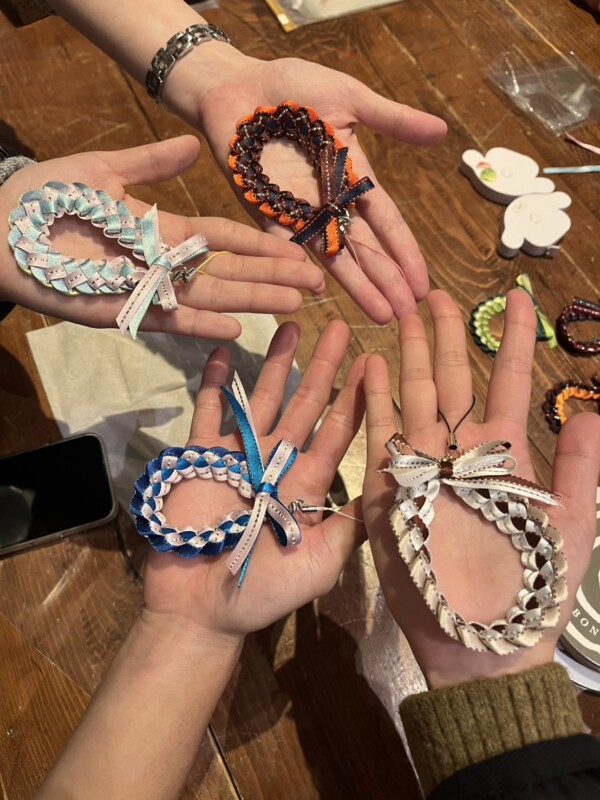 学生の様子/調理実習料理 2025.11.04(火) ラッピング🎁 本校講師:小川 末代先生の「リース&ラッピング展2025」へ行ってきましたよ! クリスマスやお正月をイメージした作品がズラリと並ぶ中、、、 本校前教頭:市橋先生の作品も展示されておりました! その市橋先生に教えて頂きながらワークショップを体験! 好みのリボンを選びストラップを作成✨✨✨ リボン結びが難しく苦戦しましたが 全員自分好みのストラップが完成しました😍 小川先生🎀市橋先生🎀ありがとうございました! < 前の記事へ 次の記事へ >
