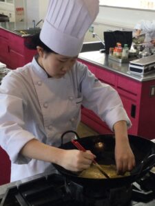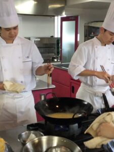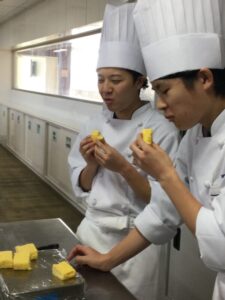 ②2年間の、学びを発揮する応用試験は各自、部門ごとにレシピから考えて料理を作り上げます。