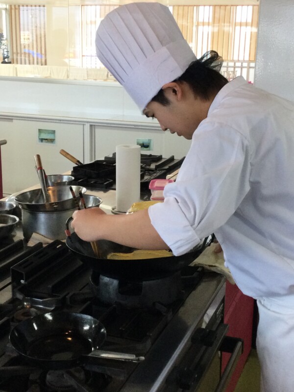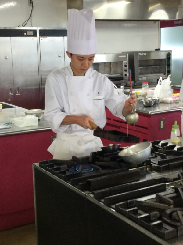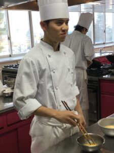 ②2年間の、学びを発揮する応用試験は各自、部門ごとにレシピから考えて料理を作り上げます。