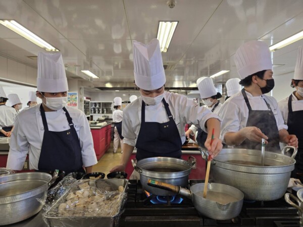 1年生は集団調理を学びながら2年生のまかない時間に合わせて準備します🧑🍳