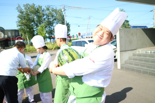 メロン農家さんから、学生に立派なメロンとスイカをいただきました★