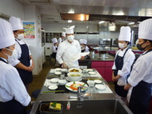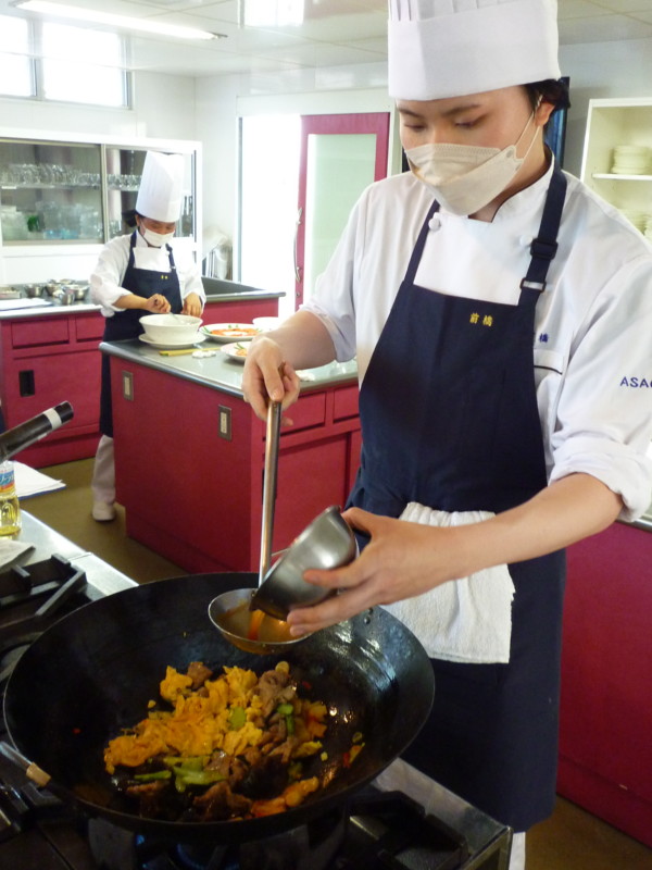 1年生はまだまだ、慣れない中華包丁を使っての実習です!