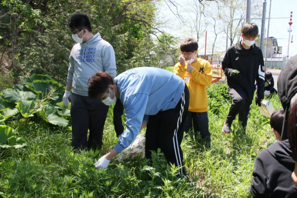 帰り道は、環境美化活動で学校までの道のりをゴミ拾いをしながら戻り