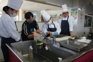 2年生は提供いただいた海産物を料理して漁師の皆さんに披露し、