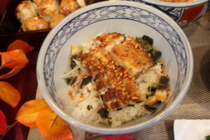 頑張って捌いた後は、サラマンダーで焼き色を付け蒸し器で蒸します